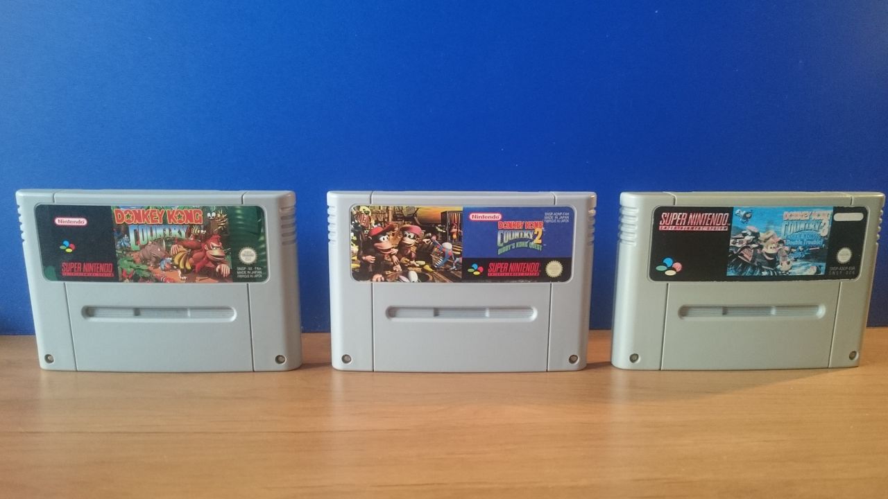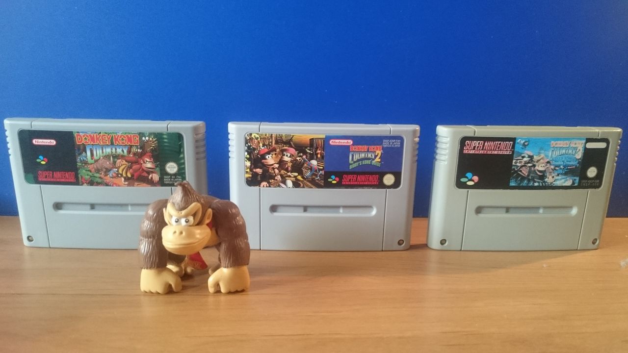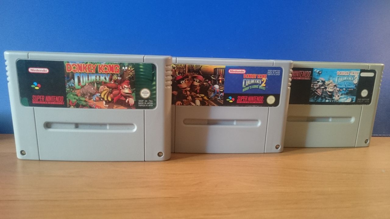 Voila, un petit achievement que j'ai pu faire dans ma vie. Posséder les 3 cartouches des 3 jeux Donkey Kong Country sur SNES ! :)