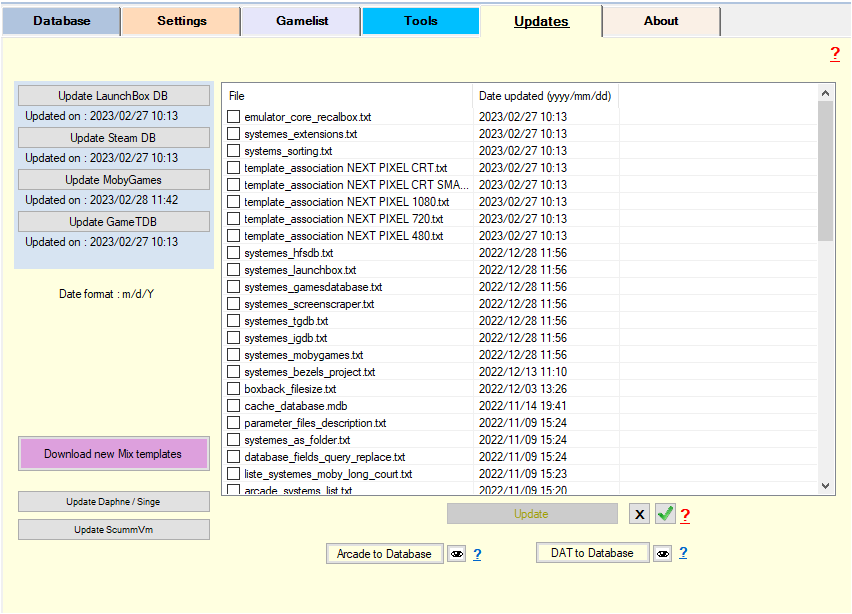 This Scrape LaunchBox module uses Launchbox metadata that must be regularly updated, by clicking on the Update LaunchBox DB button, in the Update tab in order to be in phase with the modifications / additions that may have been made to the Launchbox database