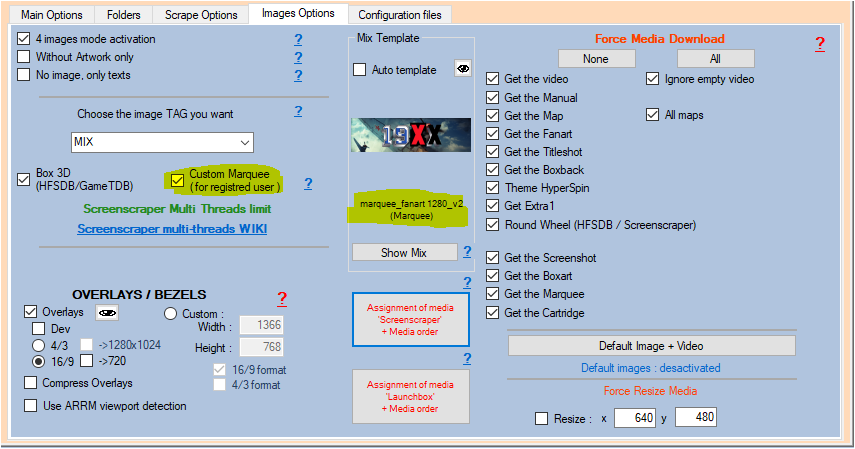 If this Custom Marquee option is not unchecked, when scraping with template mix, the template mix will not be applied and the image will not be generated