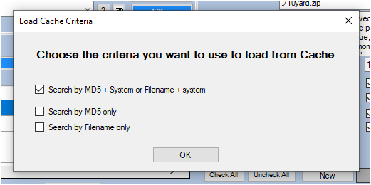 The search will be done on the MD5 of the current game only, which will be compared with the MD5 present in the cache (if the games have been cached with their MD5)