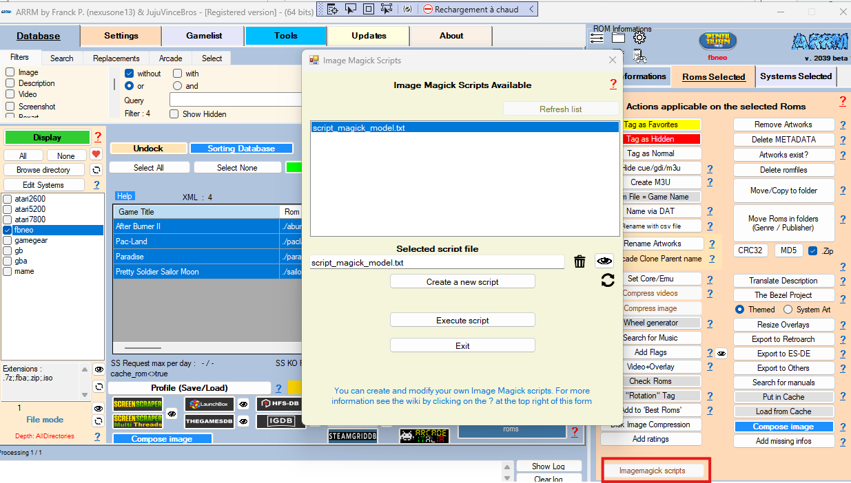 To apply a script to ROMs that already have media, simply select your ROMs and click the Image Magick Scripts button in the Selected ROMs tab.