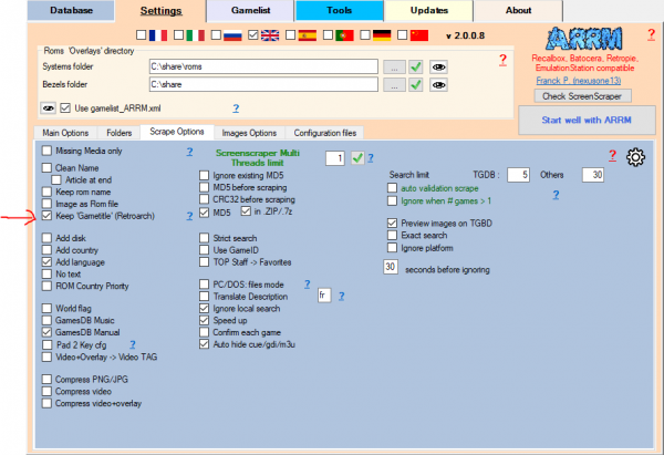 Retroarch needs the exact titles of games from .DAT files. We will therefore have to ask ARRM to retrieve these correct gametitles from its .DAT databases.