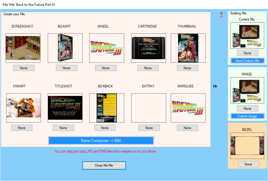 Drag and drop or select the images corresponding to the different Media elements of the ROM then of the Mix then click on 'Save images without Recompose'