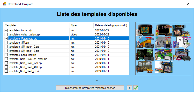Cochez les templates souhaitées, et cliquez sur le bouton Télécharger et installer les templates cochés.