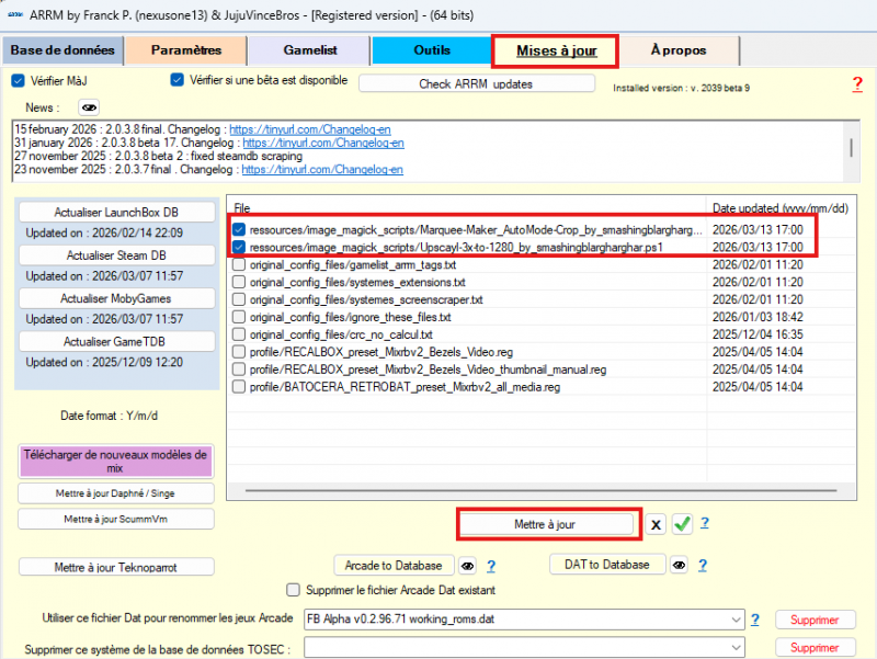Les scripts peuvent être mis à jour ou installé via le module d'update d'ARRM