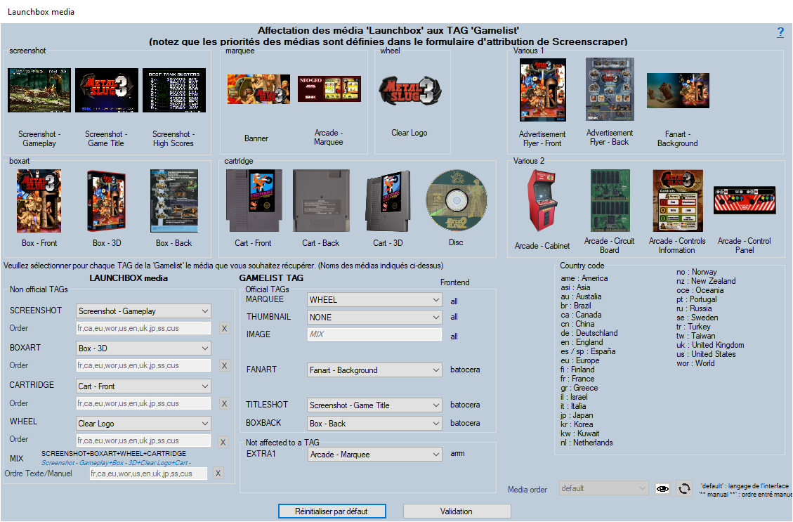 Depuis la version 1.9.1.2 Beta 16, la checkbox Priorité pays de la ROM, permet de prendre en priorité les medias du pays indiqué entre parenthèses dans le nom de fichier