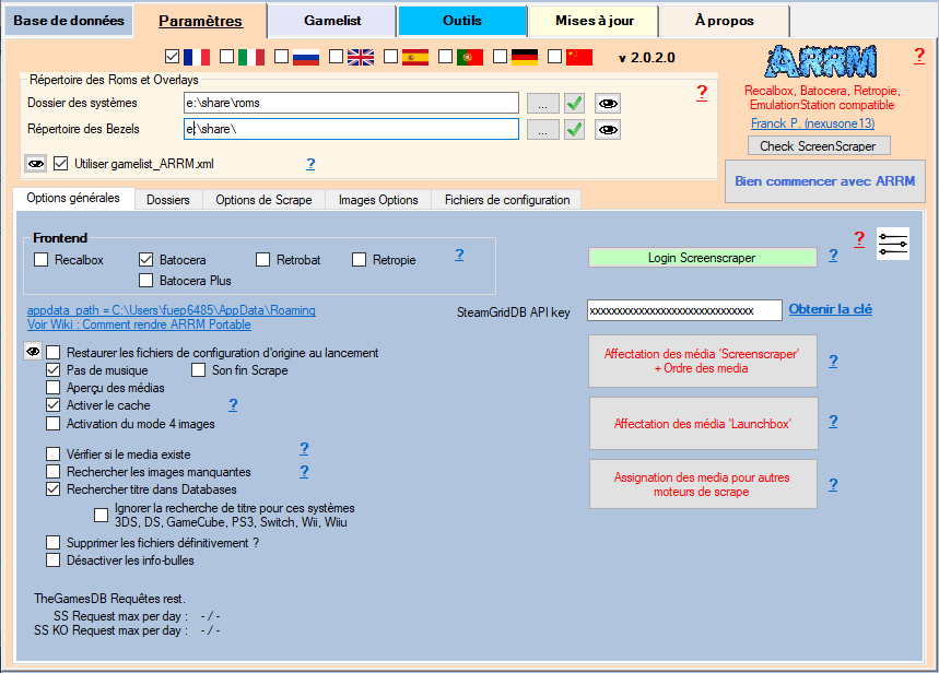 ARRM permet de modifier votre template sans avoir à re-scraper sur le net vos Roms. Pour cela il faut que vos précédents scrapes aient été effectués avec l'options '4 images' activée ( disponible dans l'onglet de configuration 'Options générales' ) ou que vous possédiez déjà les media et qu'ils apparaissent dans la database.