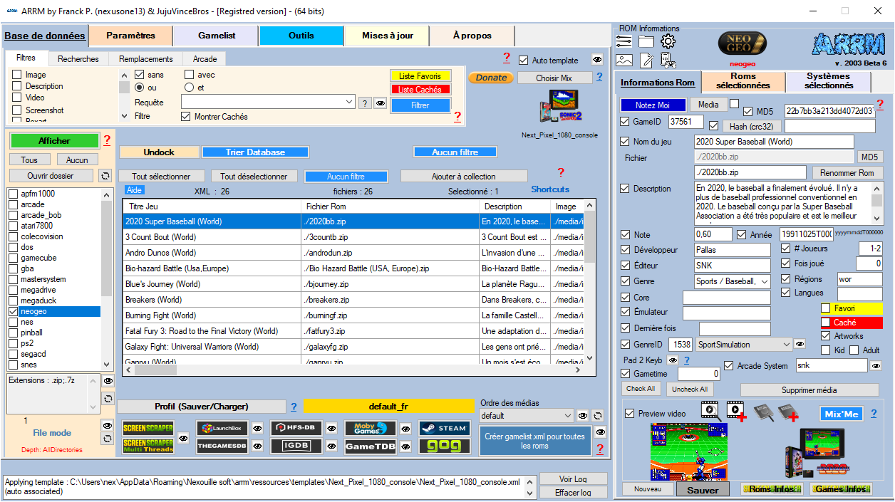 Ecran de scrape sur TheGamesDB.net