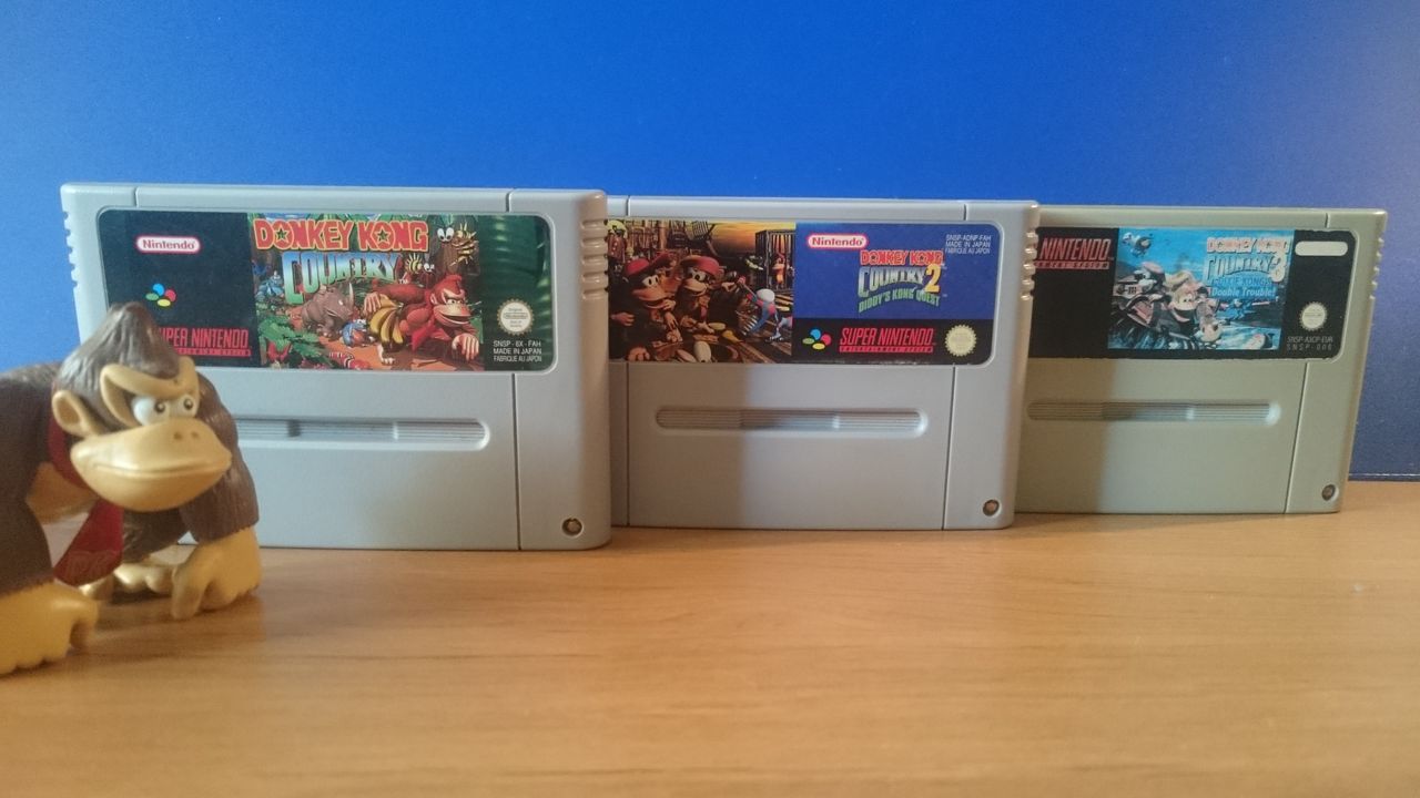 Voila, un petit achievement que j'ai pu faire dans ma vie. Posséder les 3 cartouches des 3 jeux Donkey Kong Country sur SNES ! :)