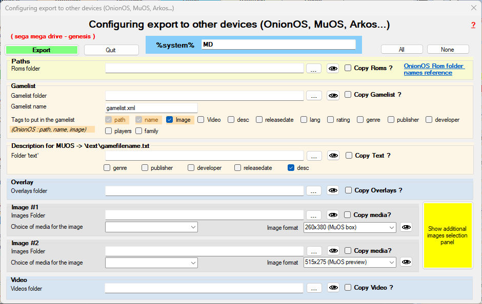 You have a mini portable console style Anbernic, Miyoo etc… which uses an OS (ArkOS, MuOS, OnionOS, ROCKNIX…) capable of displaying media and/or gamelists. ? This ARRM export module will allow you to export the media/gamelists/bezels from your systems managed by ARRM to these other system types.