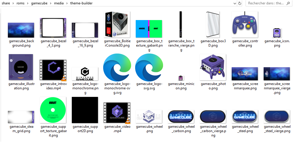 Dans l'exemple ci-dessous les media se trouvent dans share\roms\gamecube\media\theme-builder