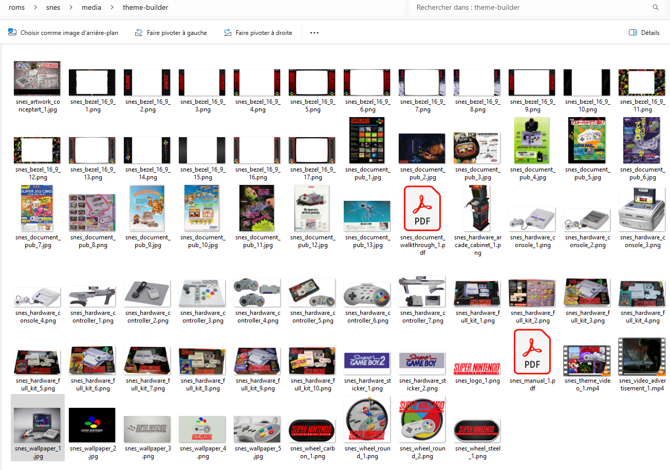 Dans l'exemple ci-dessous les media se trouvent dans share\roms\snes\media\theme-builder