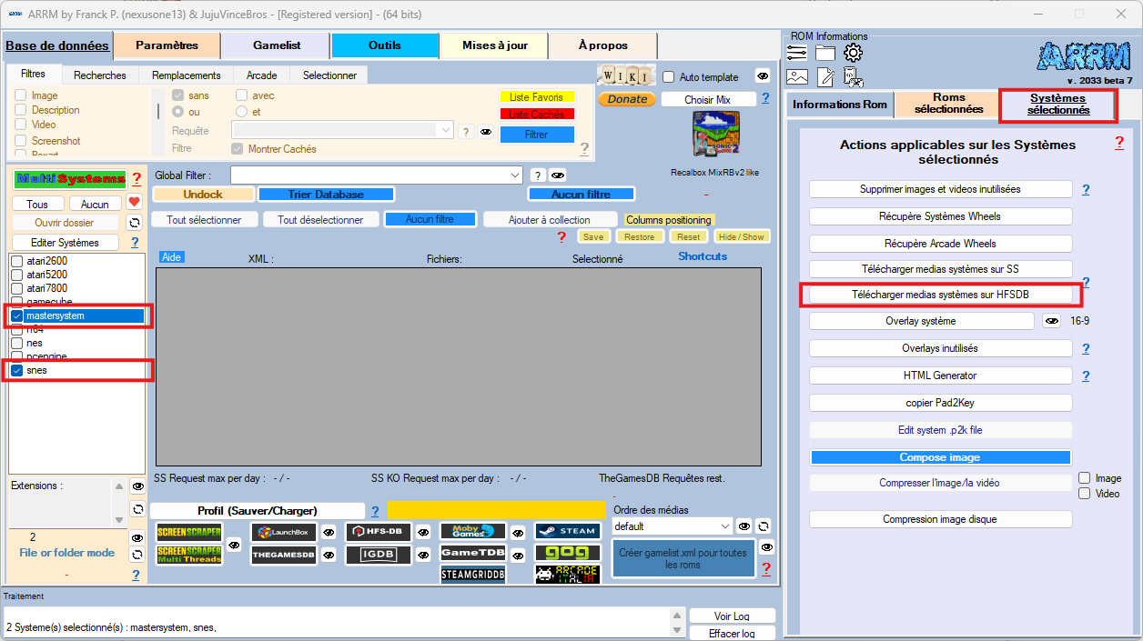 Depuis la version 2.0.3.3 Beta 7 d'ARRM , il est possible de récupérer les medias des systèmes sur HFSDB.