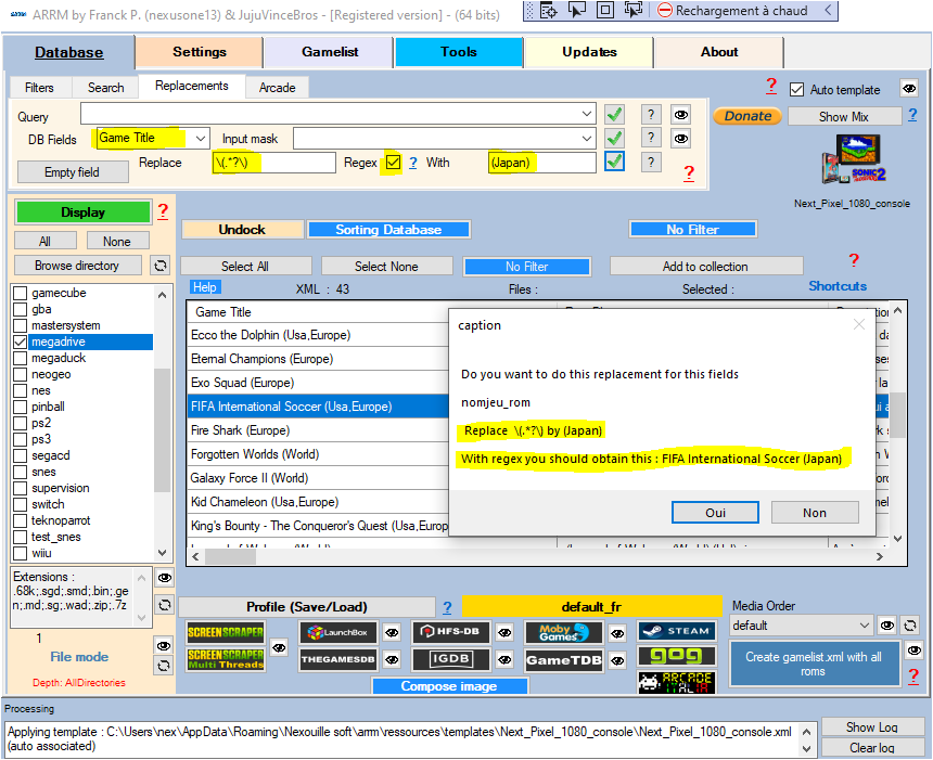 Select the field on which you want to apply changes, here it will be the field Game Title (nomjeu_rom)