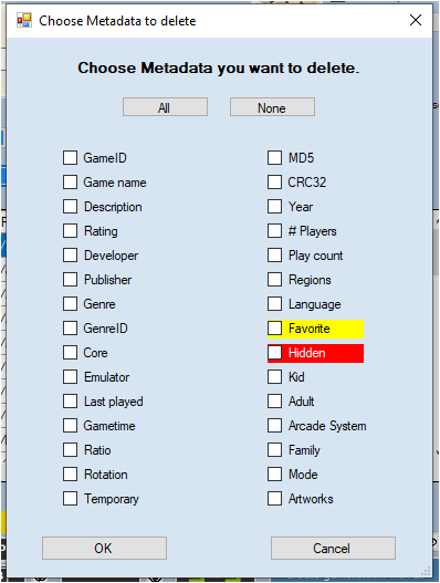 It is possible to delete (blank) all or part of the METADATA (gamelist fields). Useful if, for example, you want to reset the number of times played or the date of the last game.