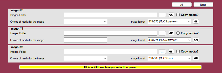 - Show additional images selection panel : allows to select other images to assign to various directories. Useful for MuOs or other systems.