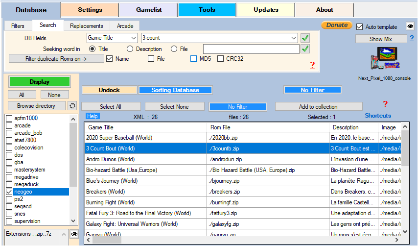 This operation can also be carried out when loading a gamelist if the Check if artworks exists checkbox is checked in the Settings tab then Main options tab