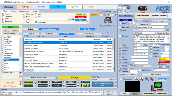 Some distributions like Retropie allow displaying gamelist with a <sortname> name which will be used to sort the gamelist. ARRM offers a multi-criteria sorting module (5) compatible with this <sortname> tag. For other systems ARRM proposes to index the file names in order to respect this order.