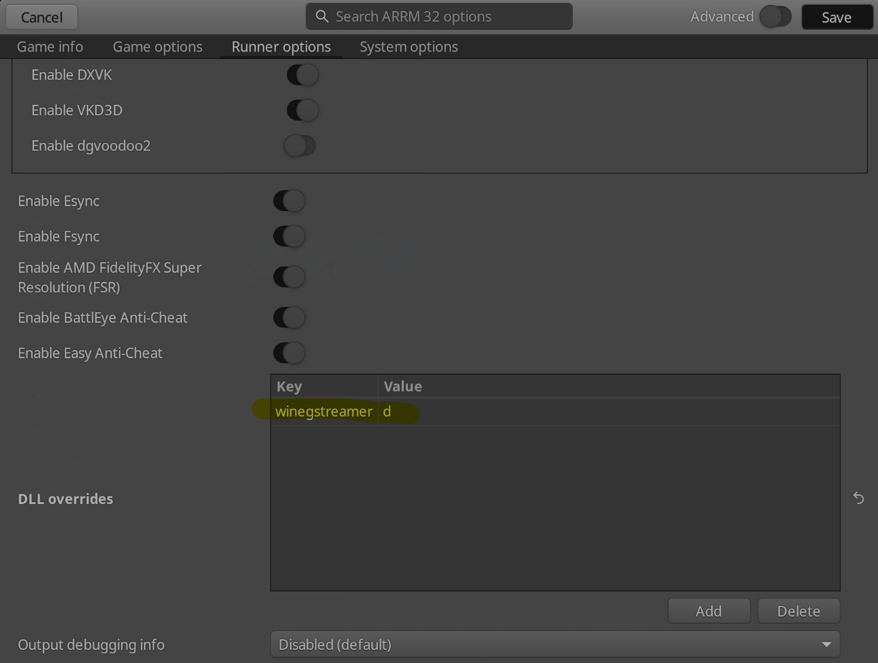 Dans votre préfixe dans “drive_c/Games/Arrm/Data”, créez un dossier “arrm_appdata“