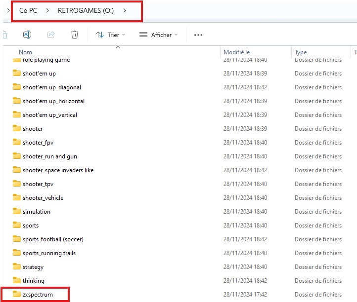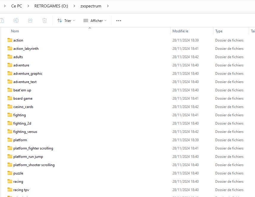 Suite à cette opération, des dossiers nommés genre ont été créés et contiennent les Roms avec le genre correspondant.