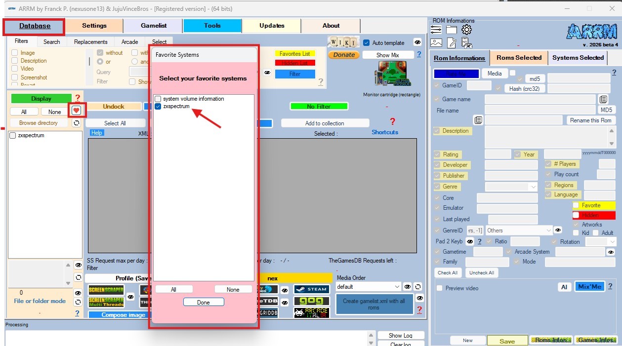 et cochez le système souhaité (ici zxspectrum) puis cliquez sur Done