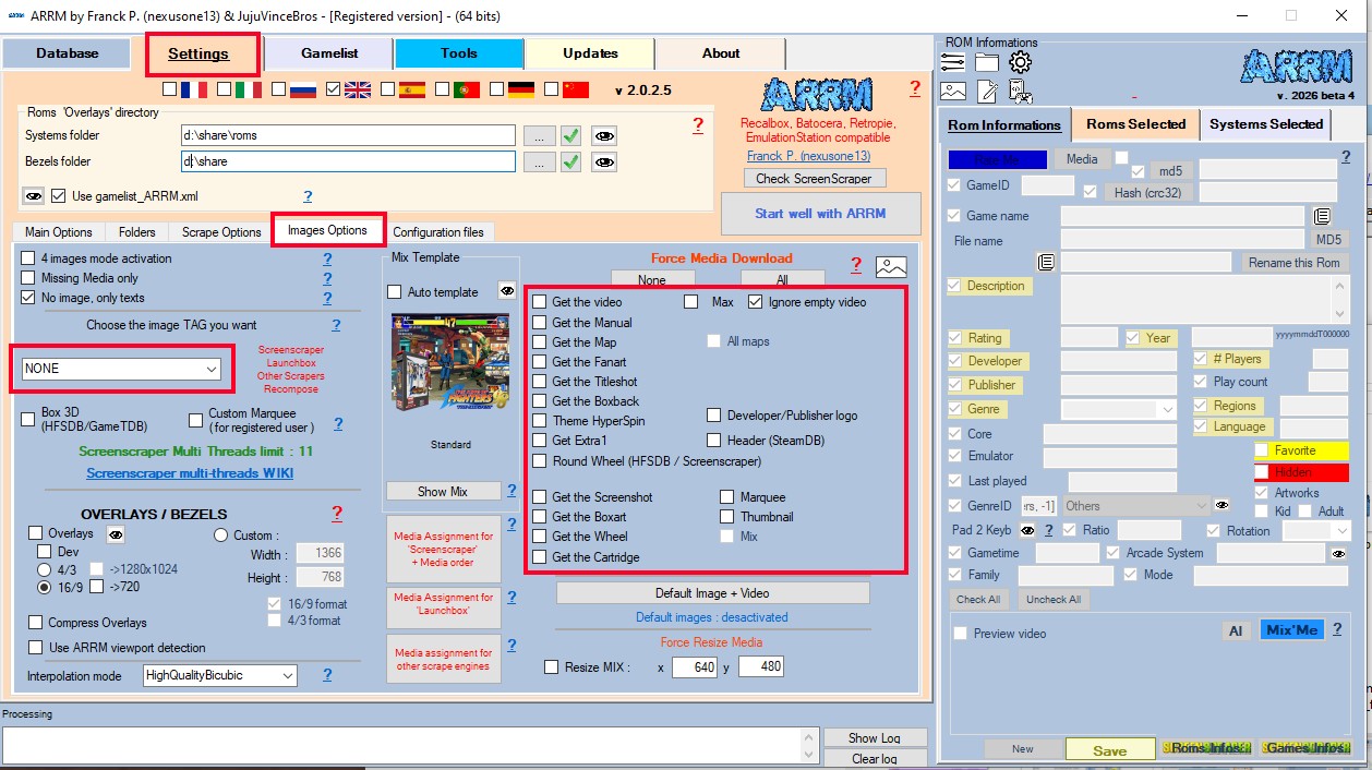 Penser à décocher Utiliser Gamelist_ARRM.xml