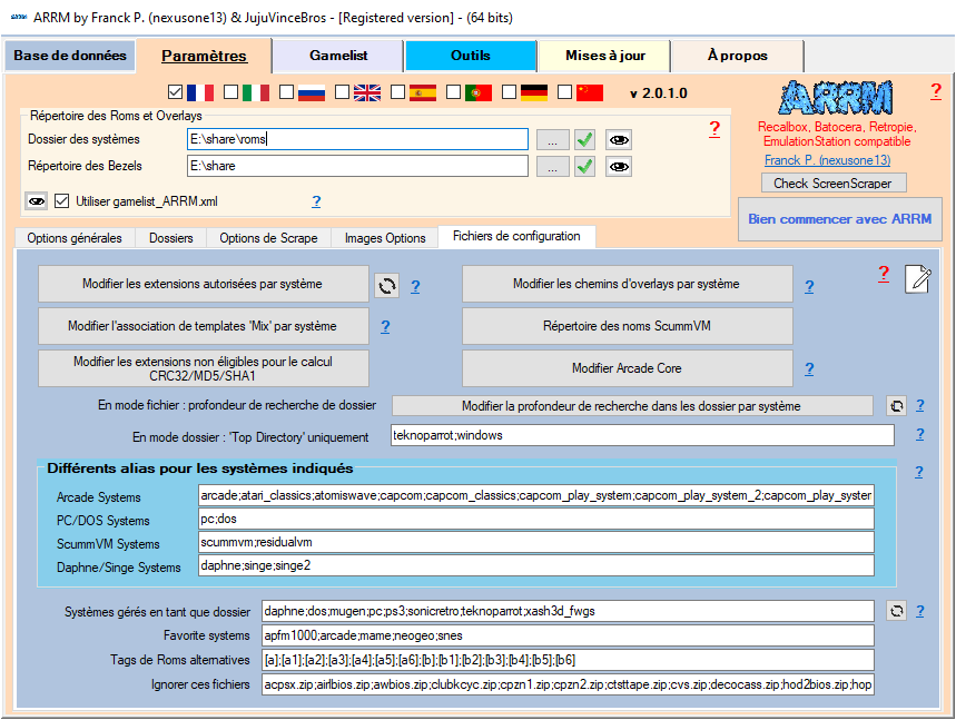 Par défaut ARRM associe les noms des systèmes (répertoires) à leur équivalent sur Screenscraper (ou TheGamesDB). Cette association se fait via le fichier :