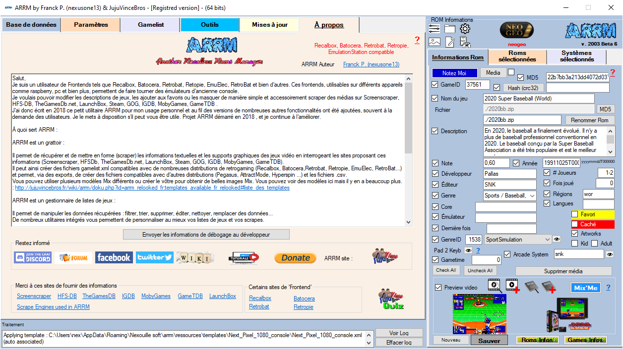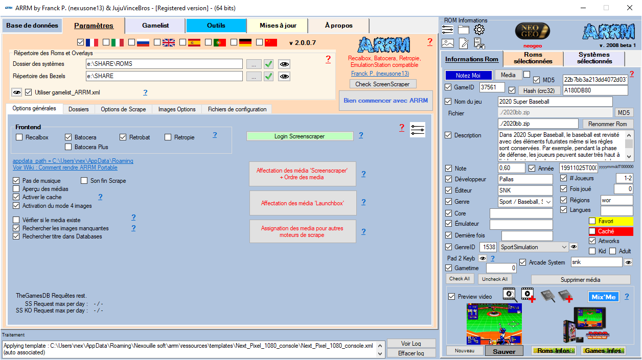 ARRM peut scraper (récupérer des informations textuelles et graphiques) sur les Roms sélectionnées, en se connectant sur des bases de données qui offrent ce type d'éléments.