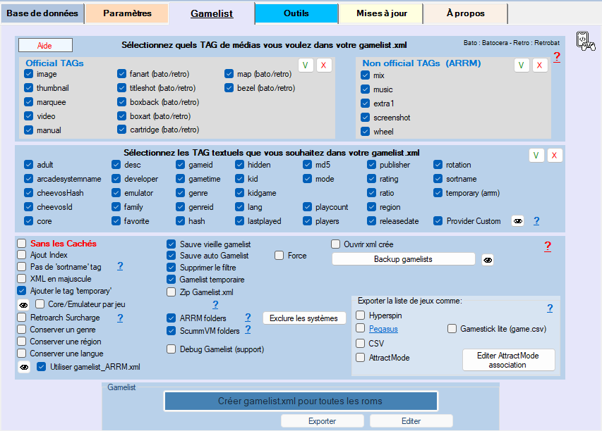 - Options de Gamelist