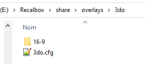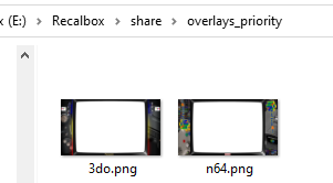 - Copiez vos fichiers overlays .png dans le répertoire overlays_priority situé dans le dossier que vous avez indiquez dans ARRM (Répertoires des Bezels / Bezels folder). Dans l'exemple ci-dessous il faudrait copier vos fichiers overlays personnalisés dans E:\Recalbox\share\overlays_priority. (ici nous traiterons l'overlay du système 3do)