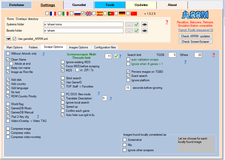 Il est possible d'automatiser ce processus, sans avoir besoin de sélectionner le jeu. Si ARRM trouve le jeu sur ces moteurs de scrape (Launchbox, Steam, GOG, HFSDb, et TheGamesDB), il peut automatiquement sélectionner le jeu. Pour ce faire vous devrez paramétrer ainsi :