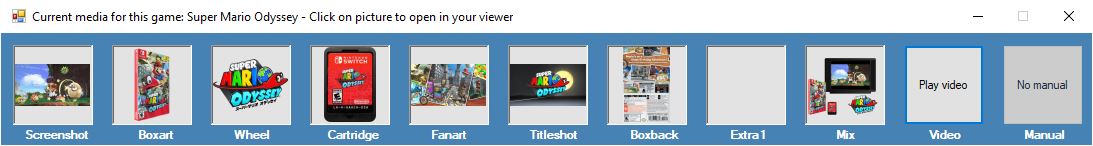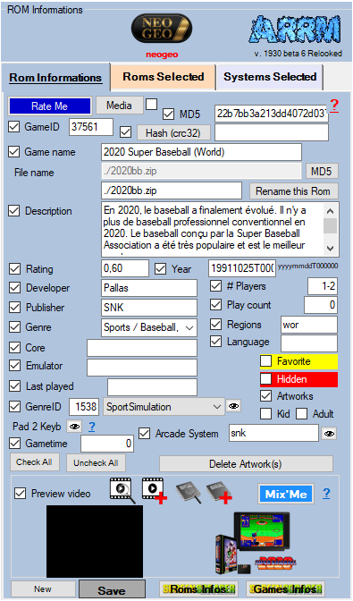 Pour connaitre les media déjà présents sur votre système pour un jeu donné, il suffit de sélectionner le jeu et de cliquer sur le bouton Media dans le panel ROM Informations. Vous obtiendrez ceci :