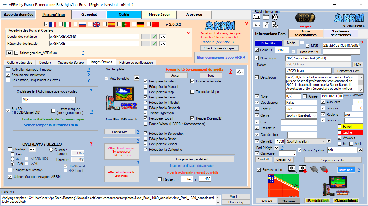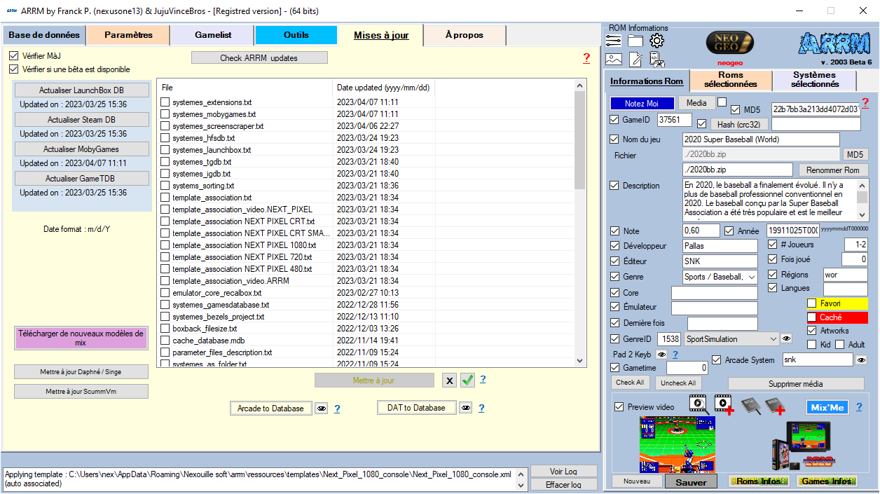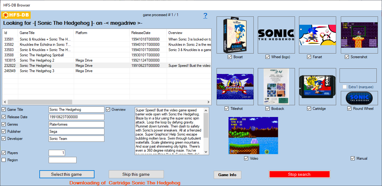 Ecran de scrape sur TheGamesDB.net