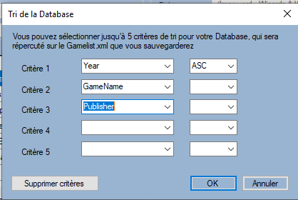 Certaines distributions comme Retropie permettent d'afficher la gamelist avec un nom <sortname> qui sera utilisé pour trier la gamelist. ARRM propose un module de tri multicritères (5) compatible avec cette balise <sortname>. Pour les autres systèmes l'ARRM propose d'indexer les noms de fichiers afin de respecter cet ordre.