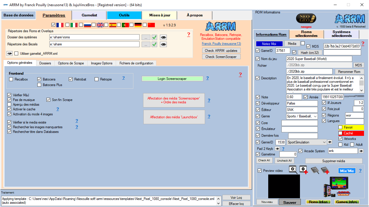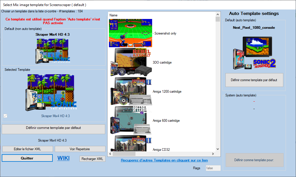 Écran d'attribution des media Screenscraper