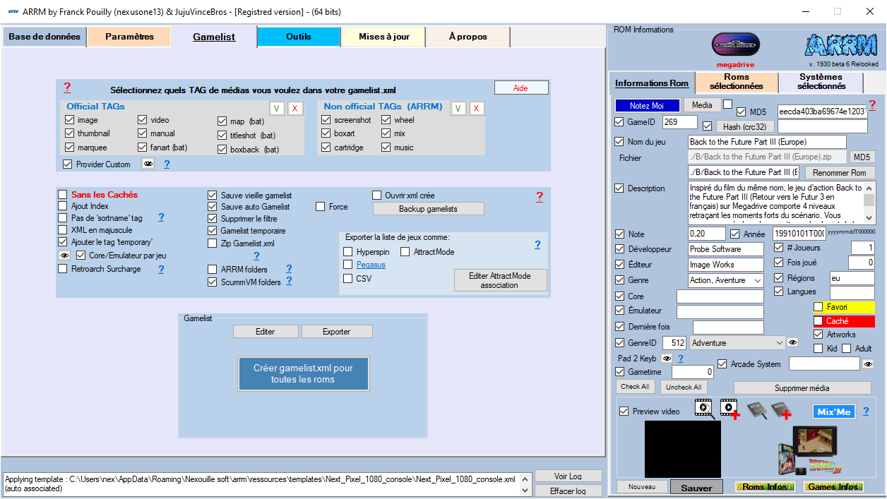 Onglet Gamelist